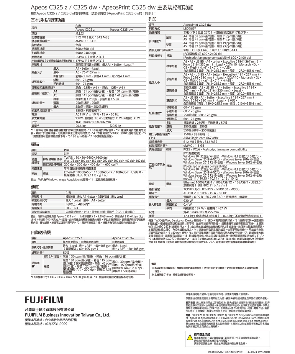 FUJIFILM Apeos日本原裝C325z彩色雙面多功複合機